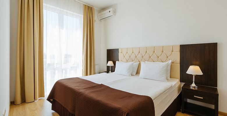 В апартаментах: апартаменты 28 кв.м – 2 гостя, студия от 40 кв.м – 3 гостя, апартаменты с 1 спальней – до 4х гостей, апартаменты с двумя спальнями – 5 гостей, апартаменты с тремя спальнями – 6 гостей.