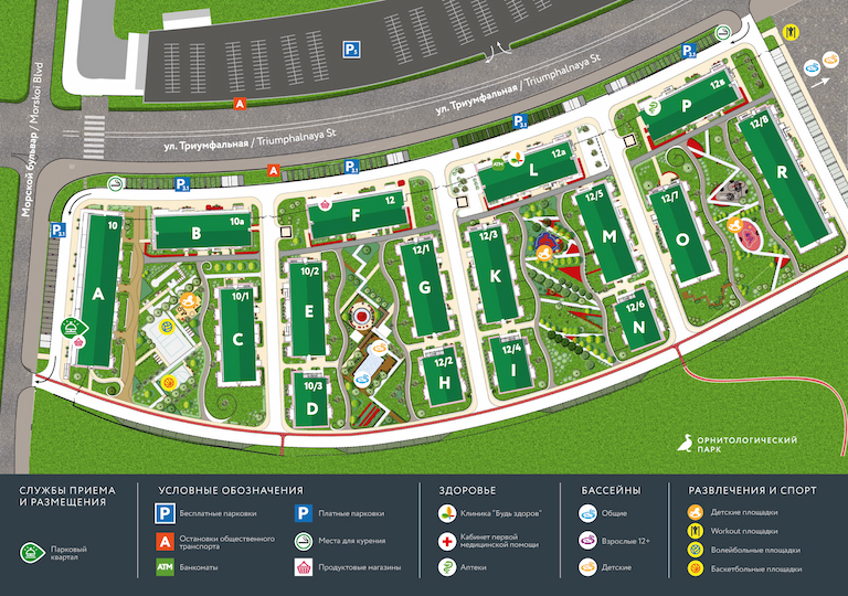 Комфортабельные номера "Первой категории" с двумя спальнями станут отличным выбором как для длительного проживания, так и для отдыха летом на короткий срок или на месяц. Уютные внутренние дворы с бассейнами, местами для отдыха, детскими и спортивными площадками граничат с природными озерами.