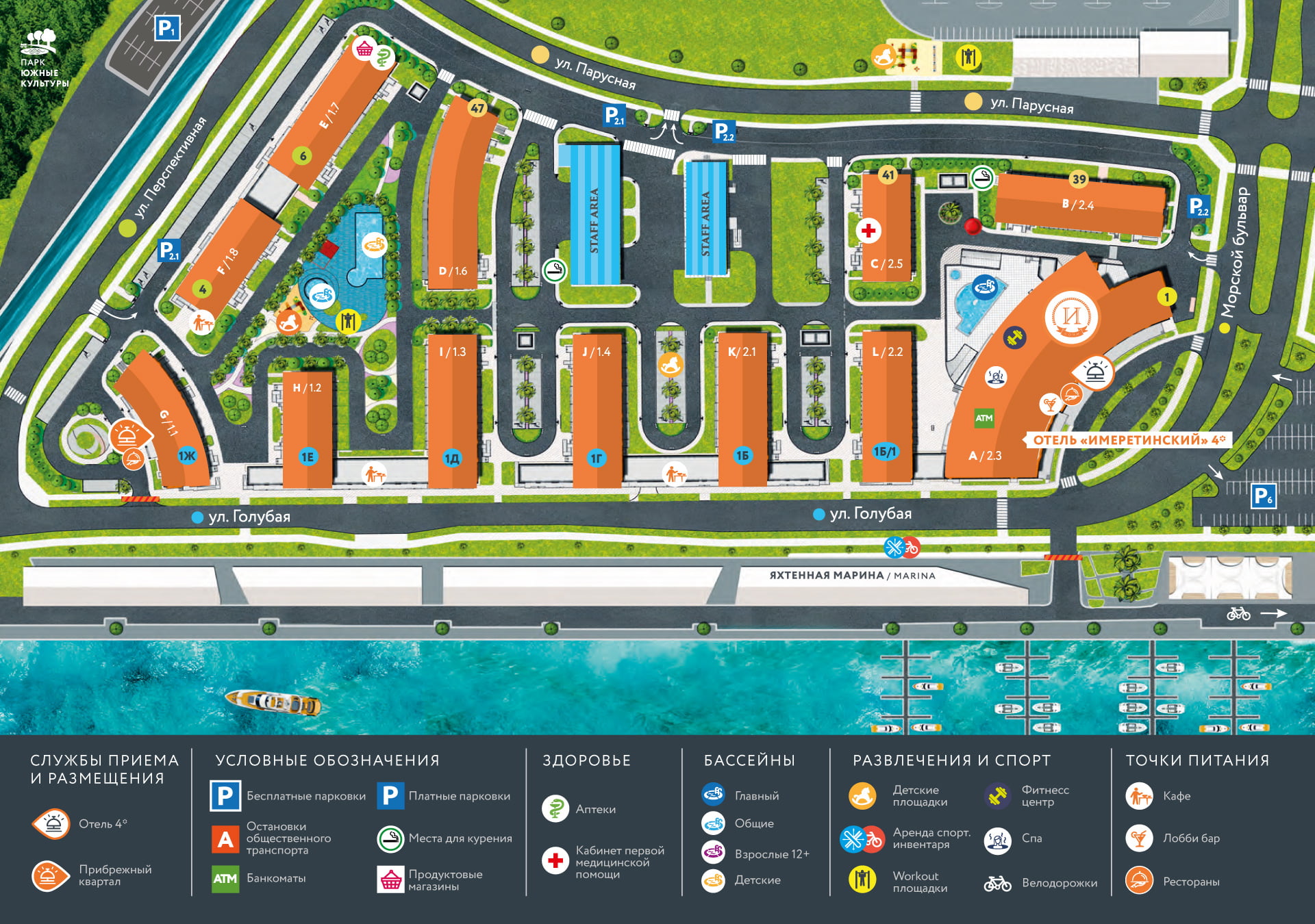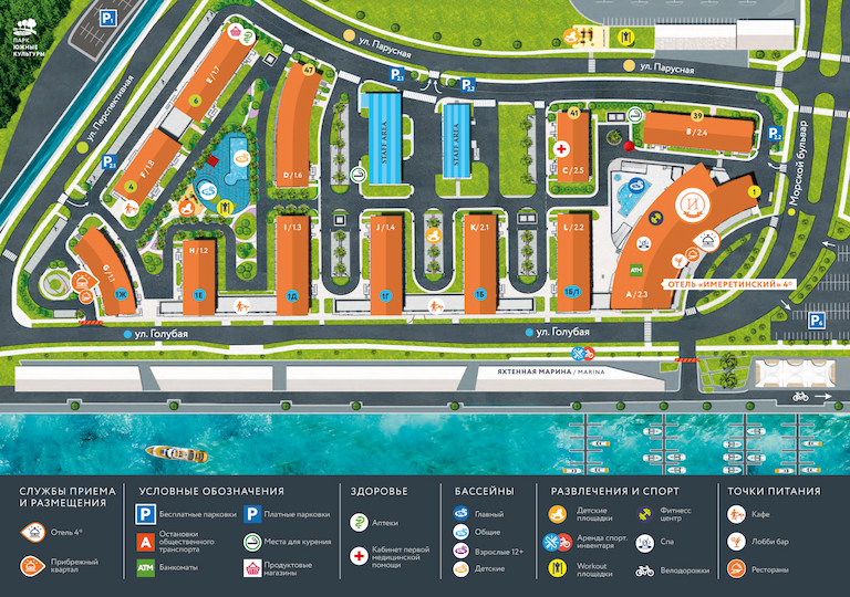 В «Прибрежном квартале» самый большой открытый бассейн, главная анимационная площадка, workout-площадка и детская комната.